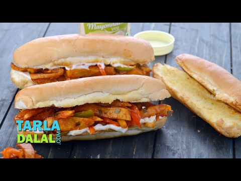 Schezuan Fries Hot Dog Sandwich by Tarla Dalal